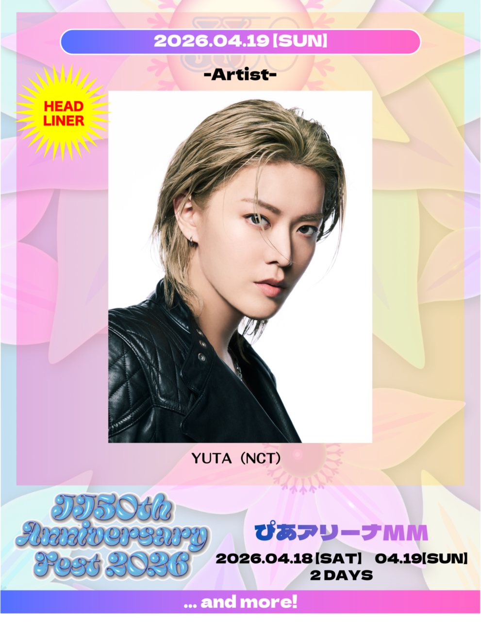 4月19日(日)公演にYUTA (NCT)がヘッドライナーとして出演することが決定しました!