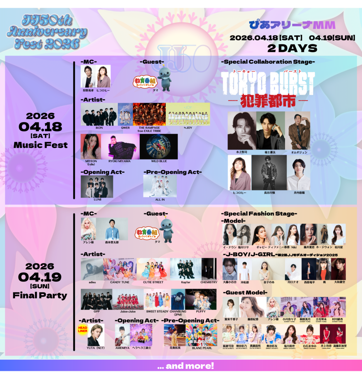 創刊50周年を迎えたファッションメディア『JJ』は、2026年4月18日(土)・19日(日)の2日間、ぴあアリーナMMにて音楽&ファッション&トークが一体となったスペシャルイベント「JJ50th Anniversary Fest 2026」を開催します。